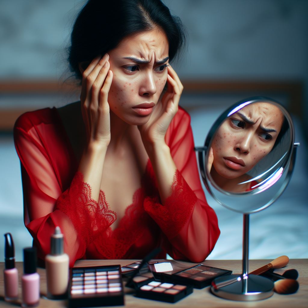 - Munculnya jerawat atau flek-flek hitam
