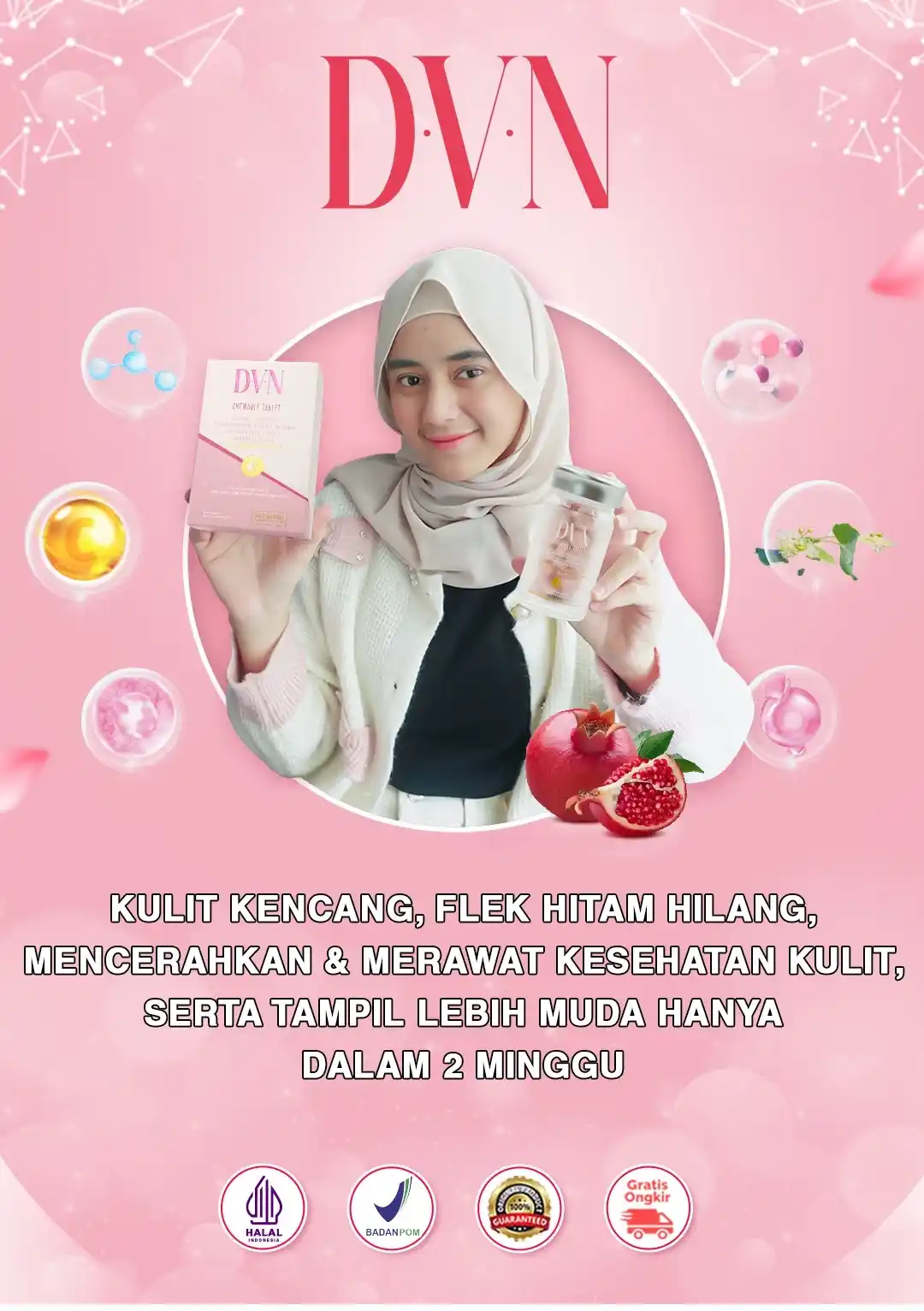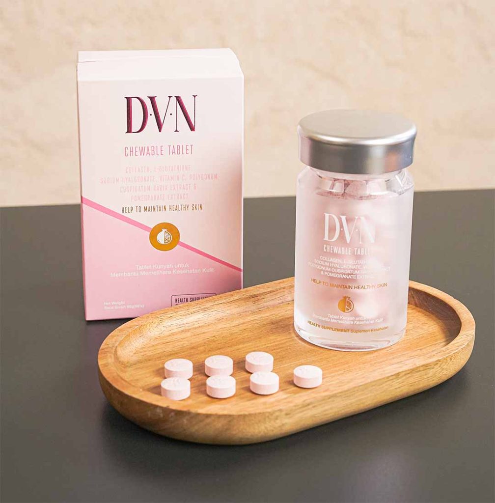 D.V.N adalah pilihan terbaik untuk solusi masalah kulit bunda, karena :- Gampang konsumsinya, tinggal hisap dua kali sehari kayak permen